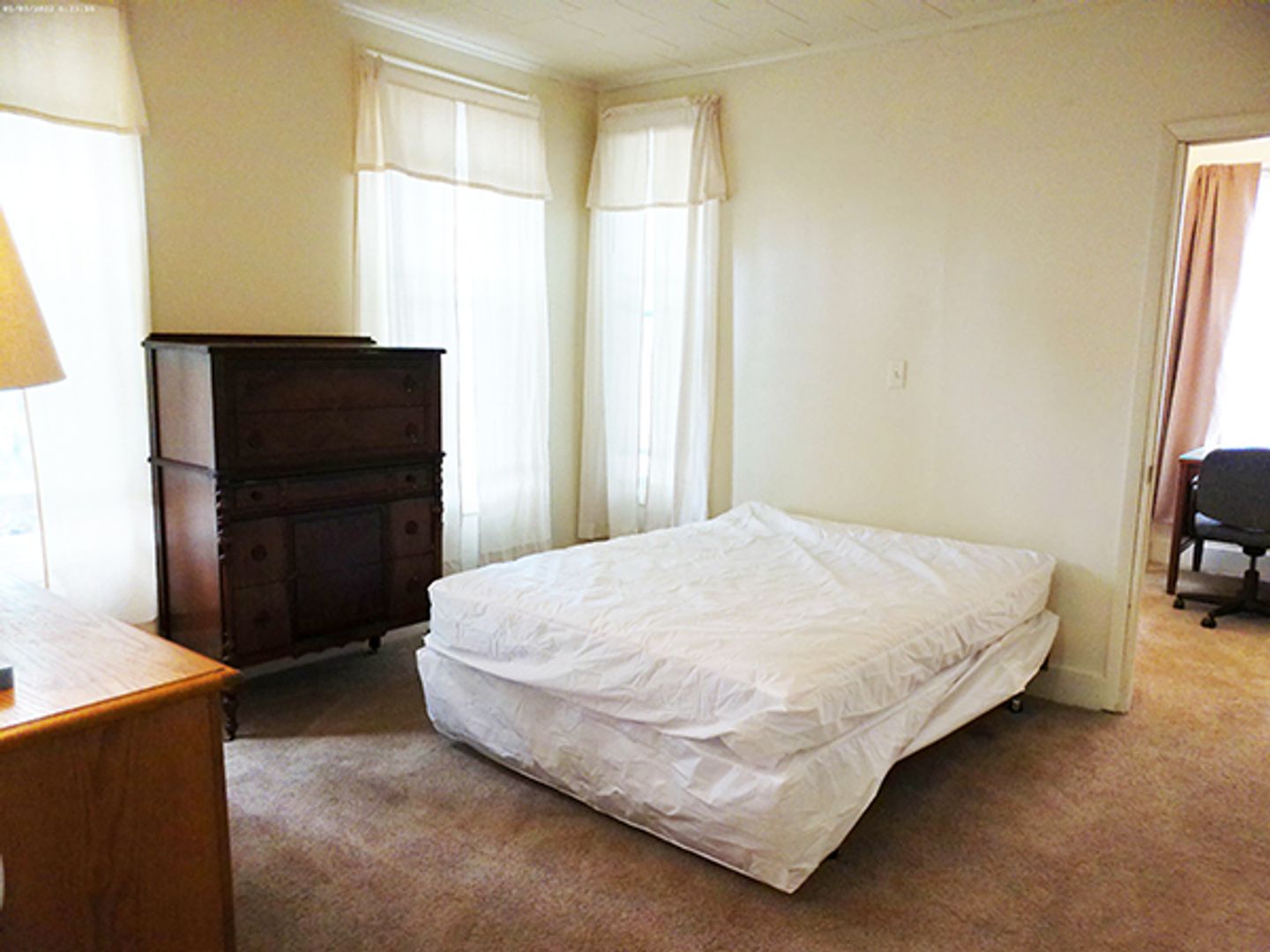 Fully furnished BEDROOM with bed, dresser, chair, and desk with lamp(s)